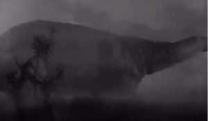 Spicer admitted in an interview a few months after his sighting that he had seen King Kong and that his monster strongly resembled the dinosaur in the movie. It’s possible that he and his wife really did see something crossing the road that they couldn’t identify, and that their memories of the King Kong dinosaurs filled in the gaps of what they couldn’t actually see. Remember that Mr. Spicer described the animal as moving jerkily with its neck moving up and down and twisting, something that also happens in the movie. He didn’t see any legs, and most of the time in the movie the brontosaurus’s legs are hidden or mostly hidden.